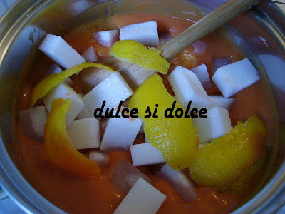 Ingrediente: 2 kg. capsuni paroase , 600 gr zahar (pentru fiecare kg . de pulpa strecurata ), coaja de la o lamaie , 1 pahar de apa.